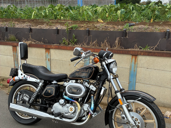 綺麗なブルーレインボーのXLHを納車させていただきました。 珍しい当時物のシートが70sの雰囲気を漂わせます とても良い時期の納車になりました!楽しんでください。ありがとうございました。